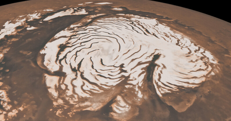 Mars is known for its thin atmosphere, where CO2 dominates and provides most of the atmospheric mass and pressure. In fact, the pressure is similar to that in the Earth’s stratosphere, which is a layer of the atmosphere, at more than 30km above the surface. But what about water? Water on Mars is currently found on the surface as a layer of ice – several kilometers thick – at the north pole. It also appears as seasonal frost at the coldest times of the year, and in the atmosphere as vapor and ice. Nevertheless, the Martian atmosphere is extremely dry…