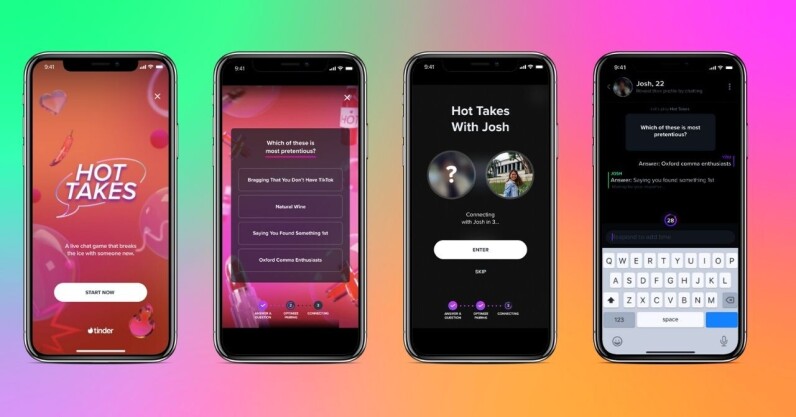 For the first time, Tinder is letting users chat before they match. The app has launched a game called Hot Takes that connects potential spouses in a speed dating-style game that’s now available every day from 6PM-midnight local time. Users will first be shown some multiple-choice questions, such as: “Which of these is most pretentious? Bragging you don’t have TikTok, natural wine, saying your found something first, or or Oxford comma enthusiasts.” Tinder will then drop them into a chat with another user who’s given similar answers. [Read: Why entrepreneurship in emerging markets matters] The potential spouses can then talk before deciding…
