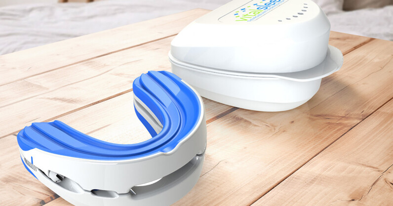 TLDR: The VitalSleep Anti-Snoring Mouthpiece lets sleep literally adjust their jaw safely at night to combat the insidious effects of snoring. You may not have heard about a small, but not insignificant change that recently rolled out on wrist-worn Fitbits all around the globe. Certain Fitbit models could now monitor for sound at night, scanning to detect any sign of snoring. That’s just the latest indication of something doctors have known for years: snoring is no joke. In addition to the psychological effects of disrupted sleep for sufferers and their partners, snoring can also be a sign of sleep apnea…
