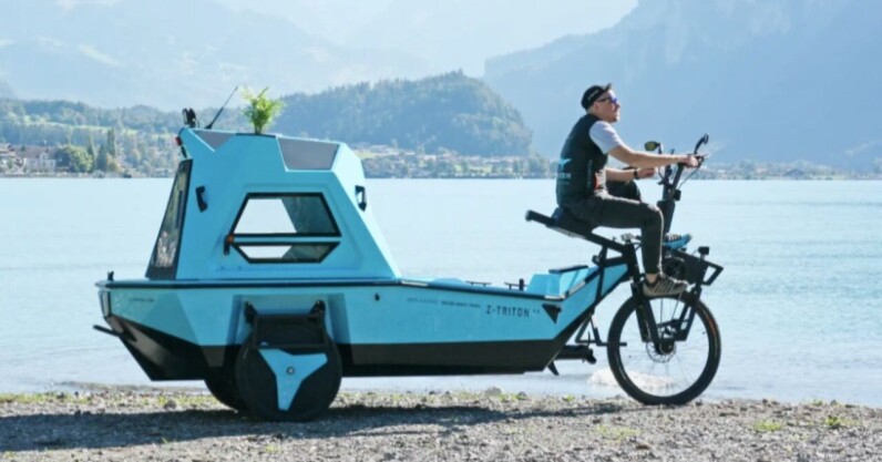 If you’ve been wondering what your Bear Grylls lifestyle has been missing all this while, meet the weird and wonderful BeTriton, the amphibious e-trike that’s a bike, a boat, and… a camper. Behold! Credit: BeTriton Formerly dubbed Z-Triton, the polymorphous tricycle was conceived and created by Aigars Lazuis, designer and entrepreneur, who seeked to upgrade cycle-touring and find a sustainable solution for die-hard travelers that want it all. The man behind this unique vehicle. Credit: BeTriton As a tricycle, it features an internal gear hub electric motor with pedal assist. Powered by a lithium-ion battery — and solar panels on…