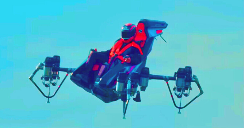 In an effort to bring personal flying machines to the skies, French inventor and former jet-ski champion Franky Zapata is taking invites for people to try out his latest flying machine – the JetRacer. Meet the JetRacer The JetRacer is a vertical take-off and landing (VTOL) aircraft powered by ten kerosene-fueled micro-turbo-jet engines. The Zapata JetRacer Controlled by two joysticks, it’s capable of a high degree of maneuverability, with a video of flipping and turning the aircraft at speed while flying over water. Not Zapata’s first rodeo Zapata crossing the English Channel Zapata’s had a long history with flying…
