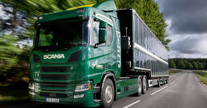 Late last week, Sweden’s Scania revealed a world-first hybrid semi-truck covered in solar panels. Because of its self-produced energy, the unique prototype has the potential to reduce both operational costs and CO2 emissions of heavy transport. The hybrid truck’s trailer is covered in 100 square metres of solar panels that are plugged into an electrical system carried on board. It is being deployed in a research project to examine how much solar energy such a configuration can generate, and how much it is possible to lower CO2 emissions through the use of the attached photovoltaic panels. As it swooshes silently down…